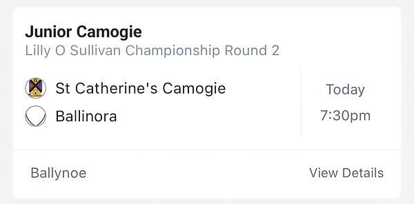 Best of luck to our Junior Camogie team as they take on Ballinora this evening in the 2nd round of the Championship. Throw in is at 7.30pm in Ballynoe. As itโs a home game, weโre looking forward to a big crowd getting behind the girls, your support makes all the difference ๐๐